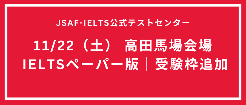 - 【JSAF-IELTS京都会場 】11月~1月テスト申込受付中!