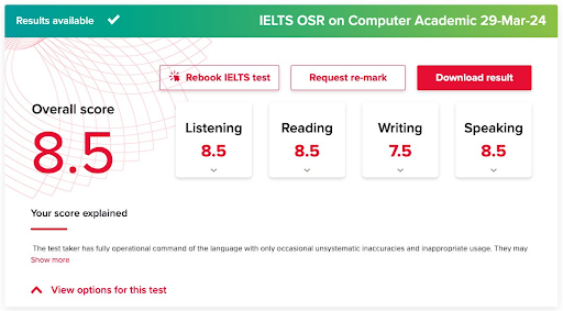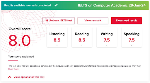 1技能に集中できるので、普段よりも対策により時間をかけられたり、試験当日もベストパフォーマンスを発揮しやすかったりと、良い点も多いです。実際、私も今回One Skill Retakeでスピーキングを再受験して、7.5から自己ベストスコアの8.5に到達することができました。
