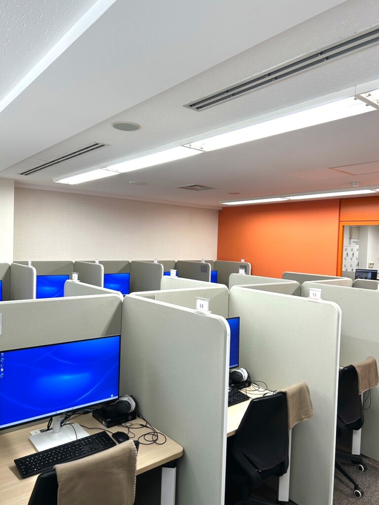 - 個人ブースはパーテーションで区切られ、スペースが広く集中できる環境