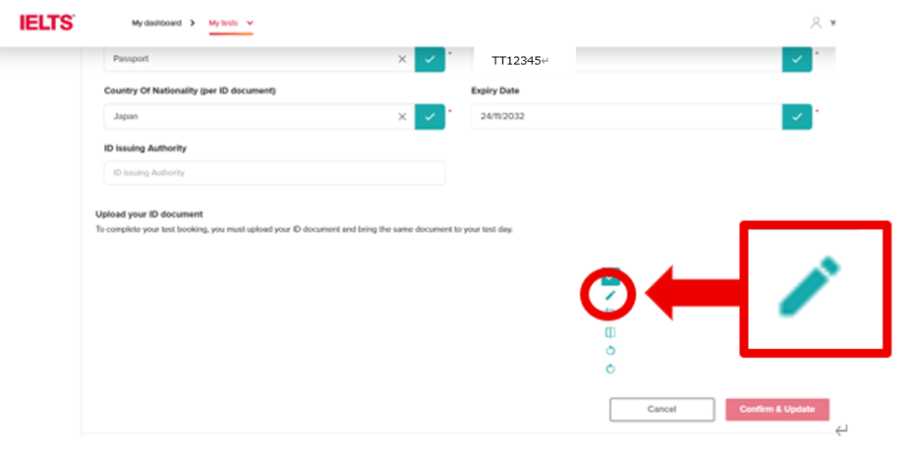 4.Upload your ID documentからブルーのペンマークをクリック